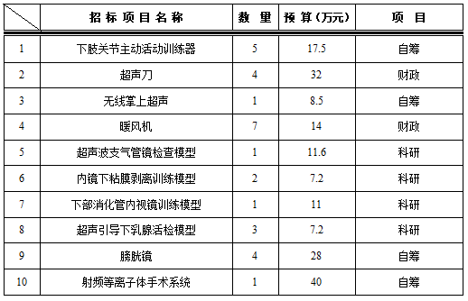 为满足临床科室需求,招标采购中心拟对以下设备进行院内招标采购,采购项目的内容及数量: