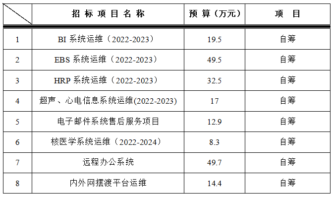 为满足医院信息系统建设需求,招标采购中心拟对以下项目进行院内招标采购,采购项目的内容及预算: