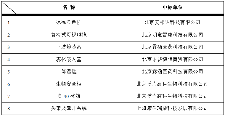 我院于2022年11月18日对以下医疗项目进行院内招标,中标结果如下: