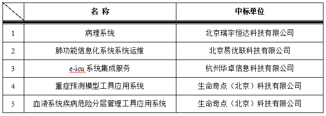 我院于2022年11月18日对以下信息项目进行院内招标,中标结果如下: