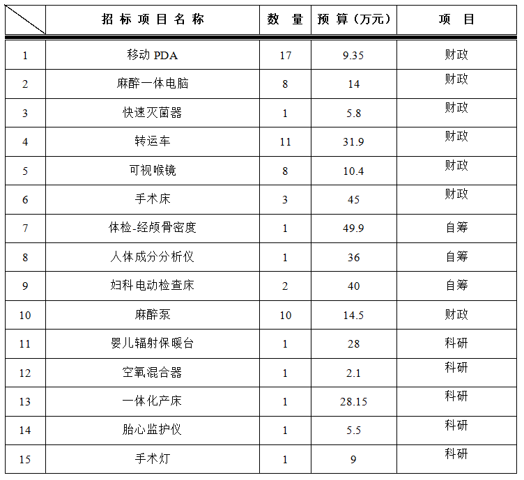 为满足临床科室需求,招标采购中心拟对以下设备进行院内招标采购,采购项目的内容及数量:
