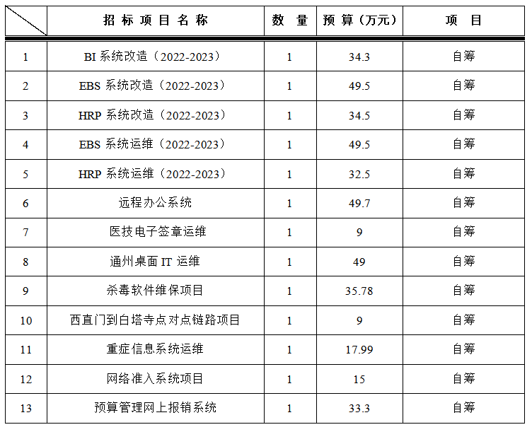 为满足临床科室需求,招标采购中心拟对以下信息项目进行院内招标采购,采购项目的内容及数量: