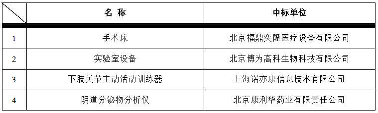 我院于2023年1月17日对以下医疗项目进行院内招标,中标结果如下: