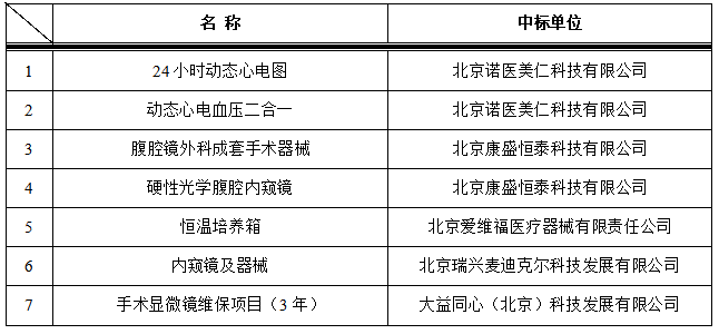 我院于2023年3月15日对以下医疗项目进行院内招标,中标结果如下: