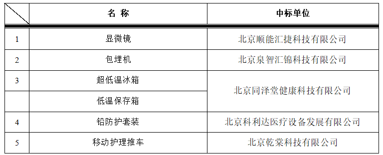 我院于2023年4月27日对以下医疗项目进行院内招标,中标结果如下: