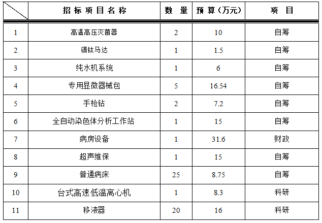 为满足临床科室需求,招标采购中心拟对以下设备/服务进行院内招标采购,采购项目的内容及数量: