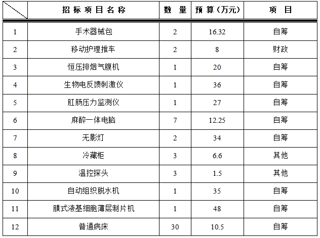 为满足临床科室需求,招标采购中心拟对以下设备进行院内招标采购,采购项目的内容及数量:
