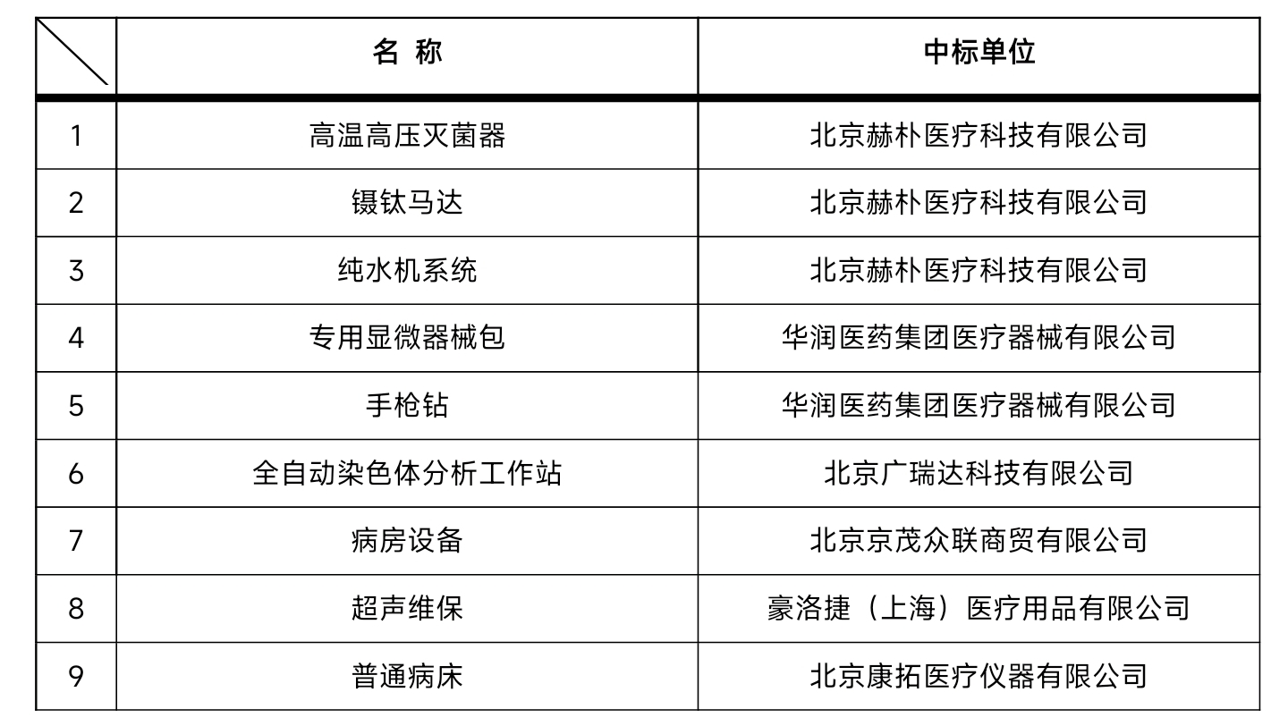 我院于2023年5月26日对以下医疗项目进行院内招标,中标结果如下: