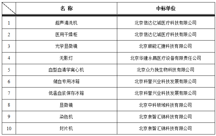 我院于2023年7月13日对以下医疗项目进行院内招标,中标结果如下: