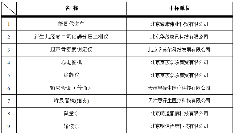 我院于2023年8月10日对以下医疗项目进行院内招标,中标结果如下:
