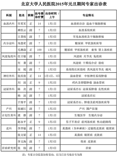 2015年元旦期间专家出诊表
