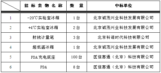 我院于2015年3月19日对以下设备进行院内谈判,中标结果如下: