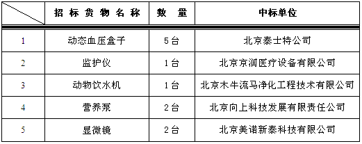 我院于2015年4月29日对以下设备进行院内谈判,中标结果如下: