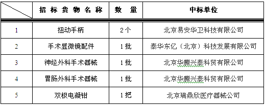 我院于2015年6月18日对以下设备进行院内谈判,中标结果如下: