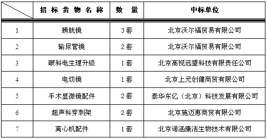 以上结果公示期2015年6月26日至2015年7月3日,如有异议可与医院设备处联系。