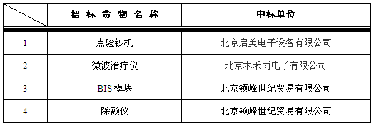 我院于2016年1月26日对以下设备进行院内谈判,中标结果如下: