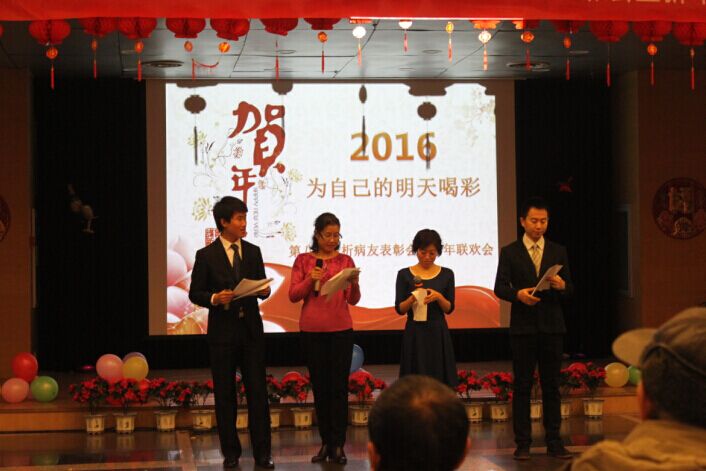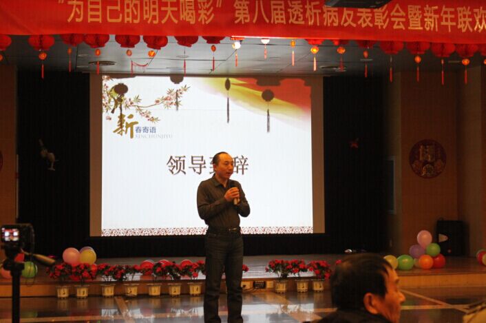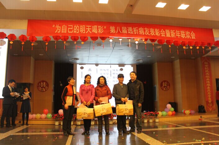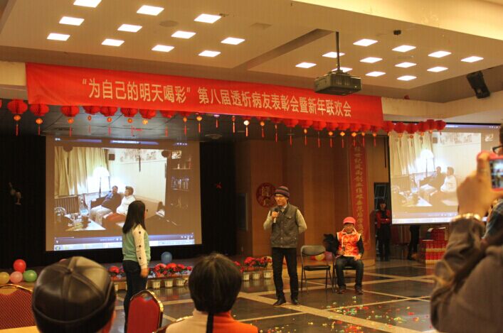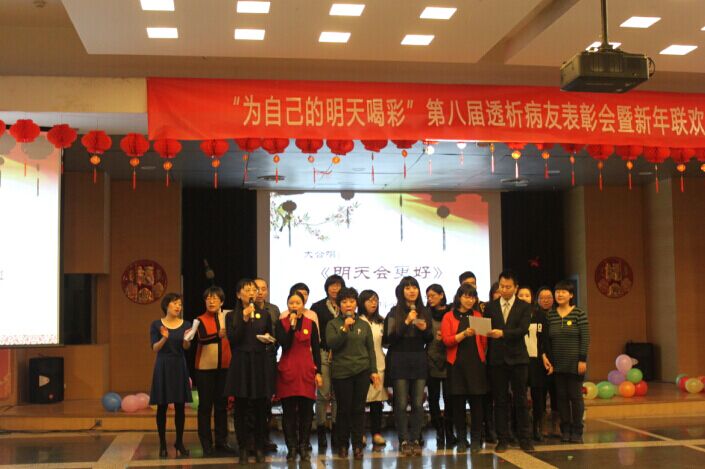 冬日的冷风吹不走洋溢的热情,刺骨的寒潮挡不住关爱的暖流。2016年1月23日,“为自己的明天喝彩——北京大学人民医院第八届透析病友表彰会暨新年联谊会”在浓浓的年味中如期而至。人民医院100余位透析病友及其家属、肾内科医护人员和医务社会工作暨志愿服务工作部(以下简称“社工部”)工作人员及志愿者相聚在科教楼多功能厅,用心感受真情,用爱驱赶寒冷,共同享受缘分带来的快乐,并一起为明天喝彩。