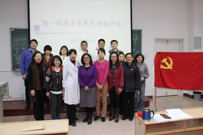 阳春三月,正值十二届全国人大二次会议和全国政协十二届二次会议开幕之时,为响应两会精神,进一步加强基本理论知识的学习,深入理解中国共产党的统一战线方针政策,北京大学人民医院机关四支部于2014年3月6日中午召开党支部活动。此次支部活动除了按照惯例传达党委工作,进行下一阶段工作安排外,为进一步加强党员同志对于时事政治,特别是统战工作的了解,特邀请了医院妇科肿瘤研究室的昌晓红副研究员(所在党派为九三学社)为支部全体党员同志进行了主题为“统一战线与各民主党派介绍”的报告。