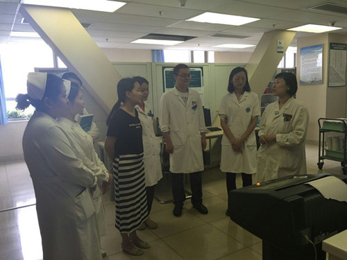2015年5月27日上午12时,风湿免疫科的所有党员和积极分子、骨干在支部书记的带领下,参观了病房和门诊药房。药房负责人给大家讲解了医院信息化平台的工作流程,演示了药房配药和病人取药的过程。大家热烈讨论学习了改造后药房的工作流程,更深入地了解了药房与病房、门诊间配合的关键环节。